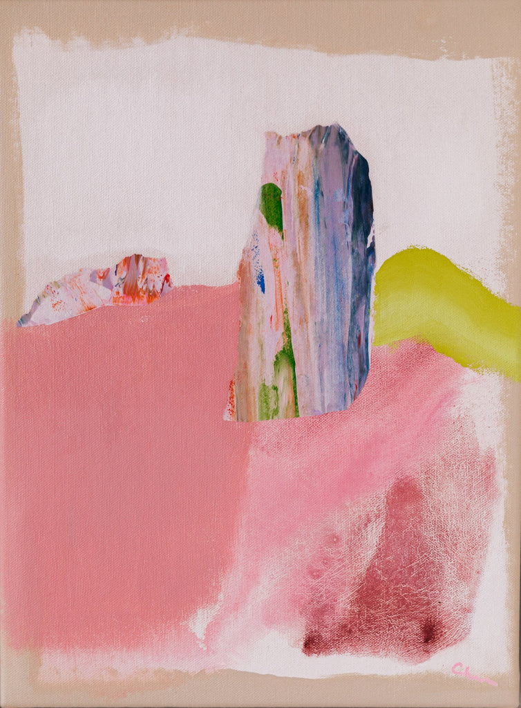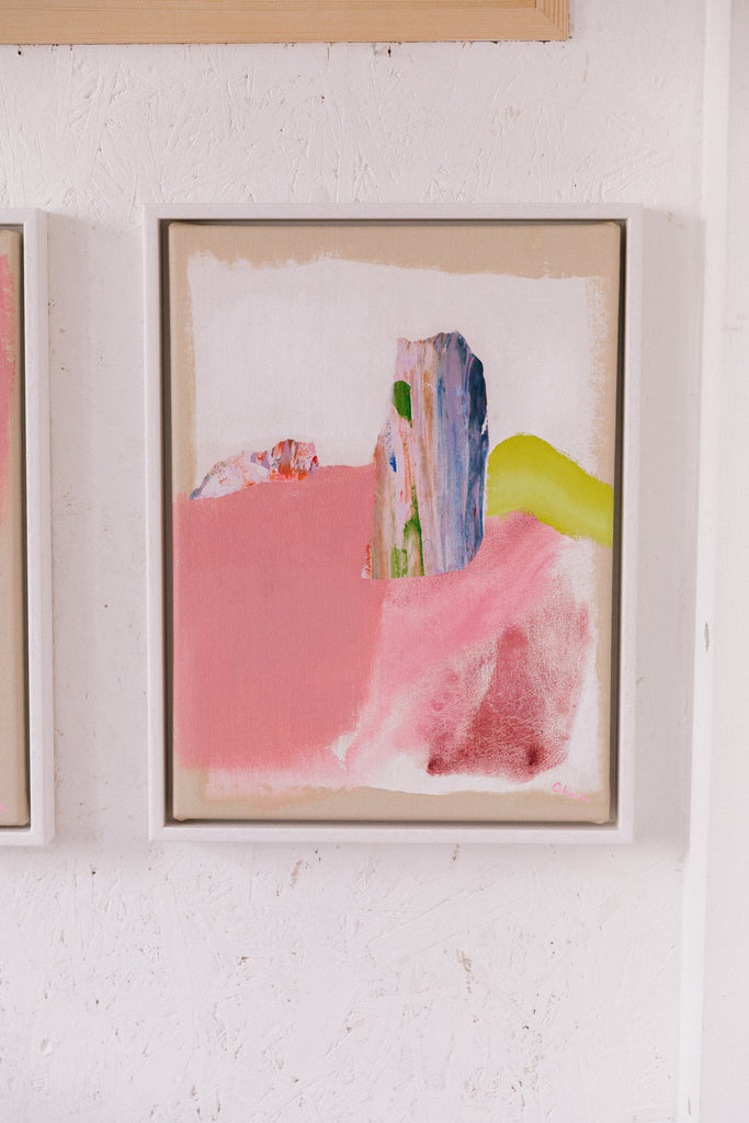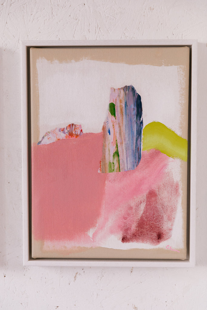 30 x 40 cms, mixed-media on canvas, includes white wood float frame